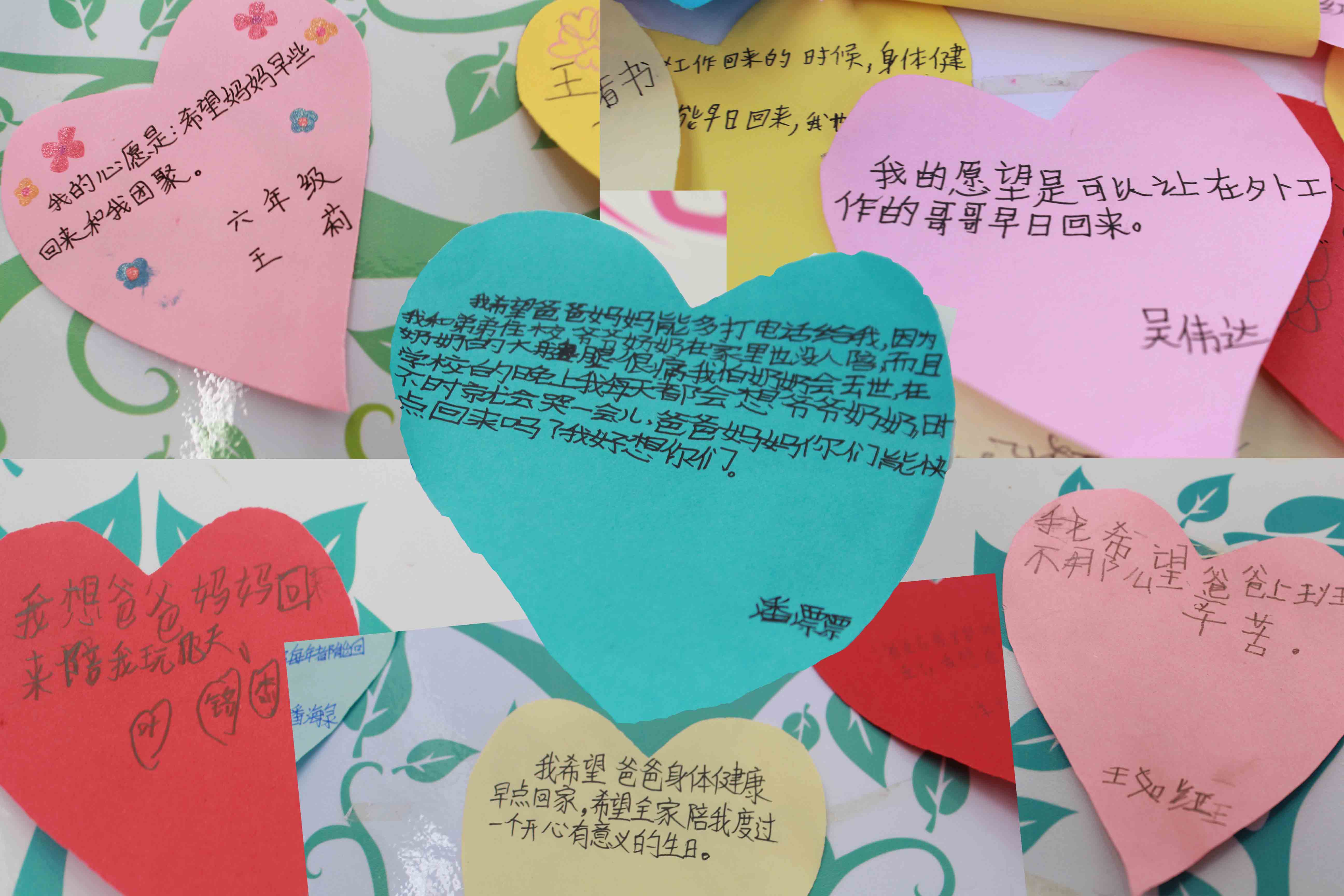 心愿墻上孩子們一個(gè)個(gè)小小的心愿,卻給我們留下了極大的震撼