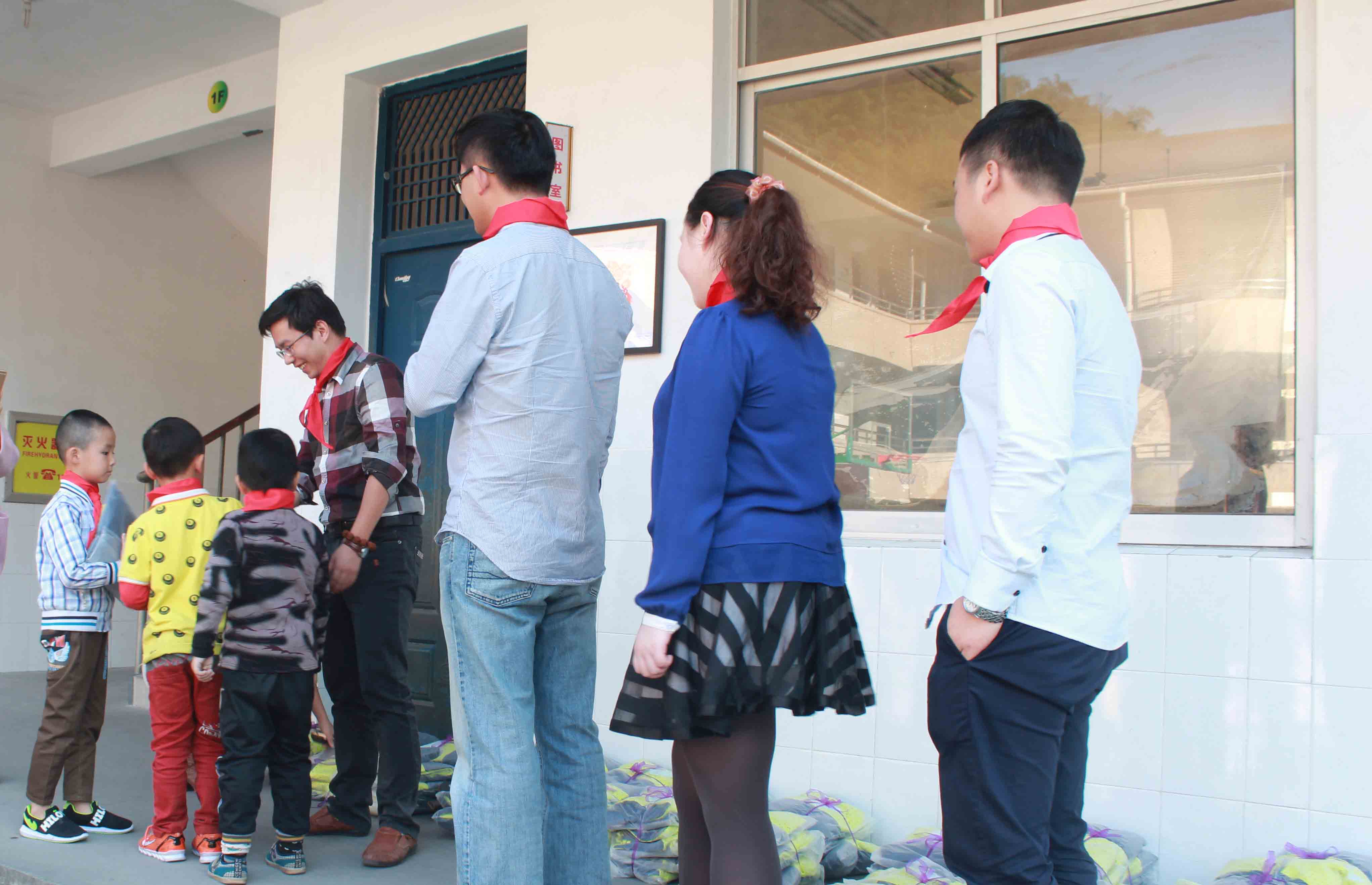 校服捐贈(zèng)儀式開始前,六年級(jí)的學(xué)生代表為我們系上了鮮艷的紅領(lǐng)巾,在我們幾人當(dāng)中告別紅領(lǐng)巾的歲月少則也已有8、9年,多則已近20余年,然而在系上紅領(lǐng)巾的那一刻那種久違的情愫仍會(huì)涌上心頭,自豪、喜悅、激動(dòng)還有懷念。同樣的,當(dāng)這群孩子們從我們手中接過校服的時(shí)候,我們從他們的眼中看到了更多的情感涌動(dòng):憧憬、好奇、期待、喜悅。這群淳樸熱情的孩子們用他們那真誠的笑容,毫無掩飾的表達(dá)了他們對(duì)校服的喜愛,卻也流露出了他們?cè)?jīng)對(duì)校服的渴望之情。