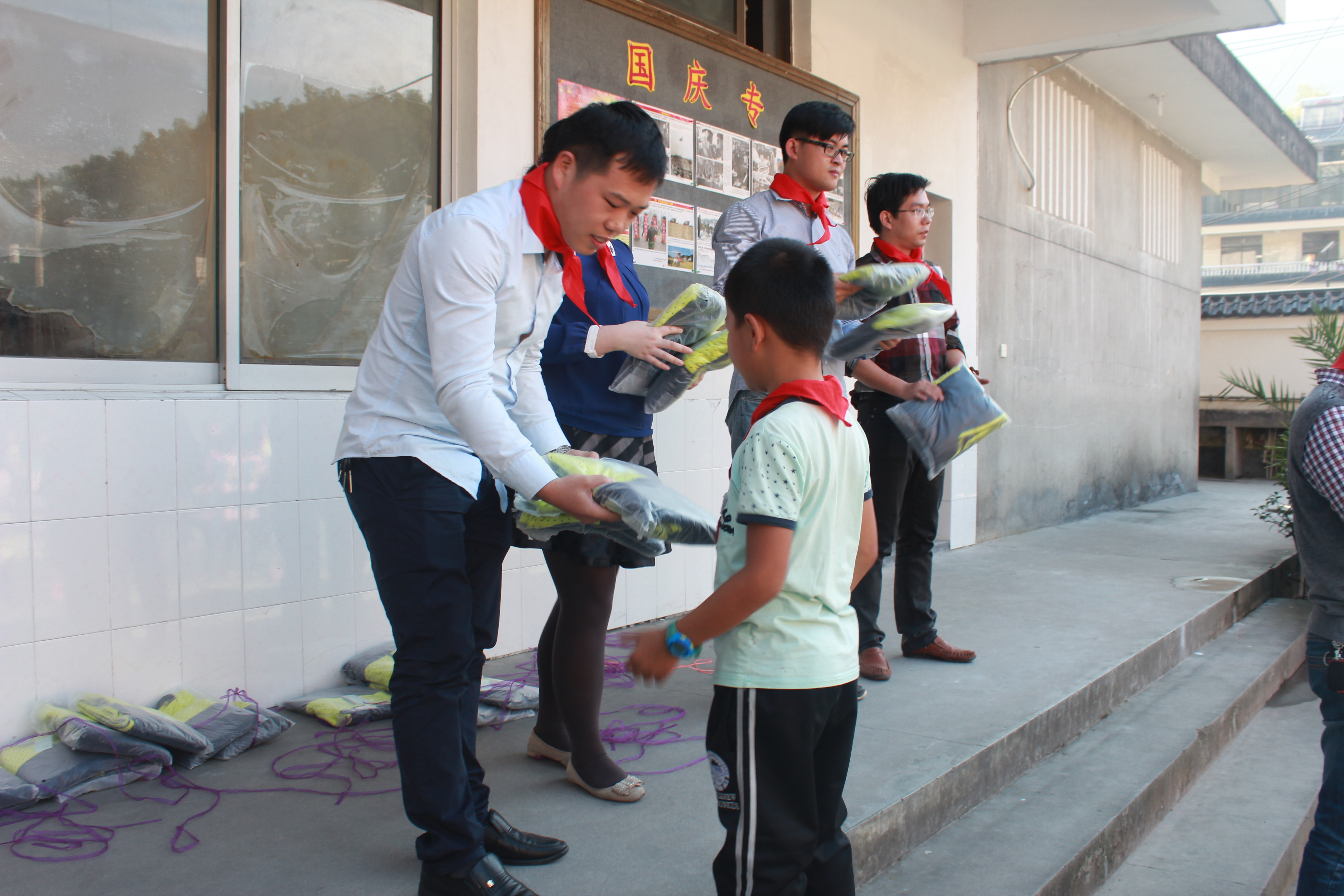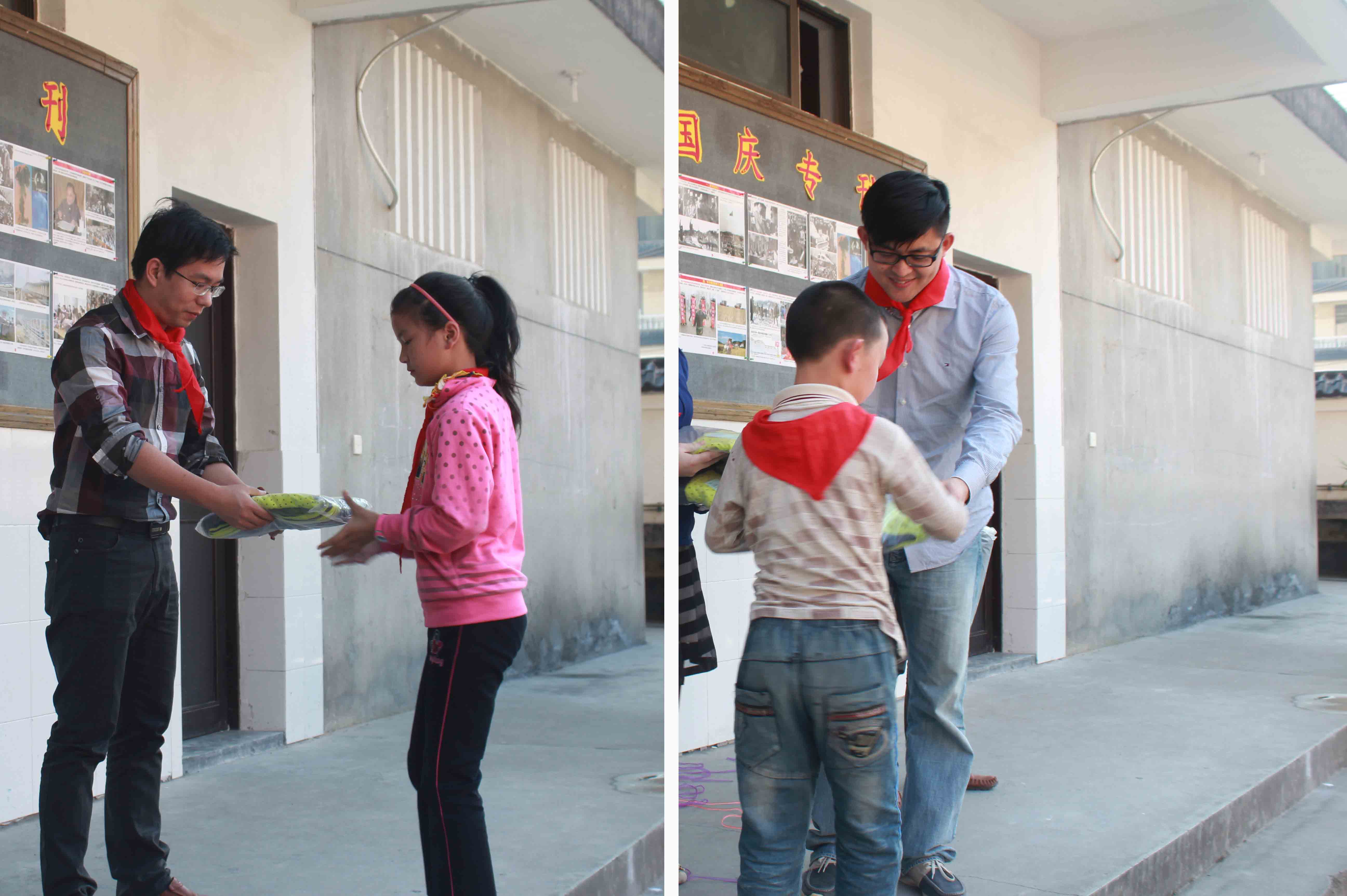 為孩子們分發(fā)校服