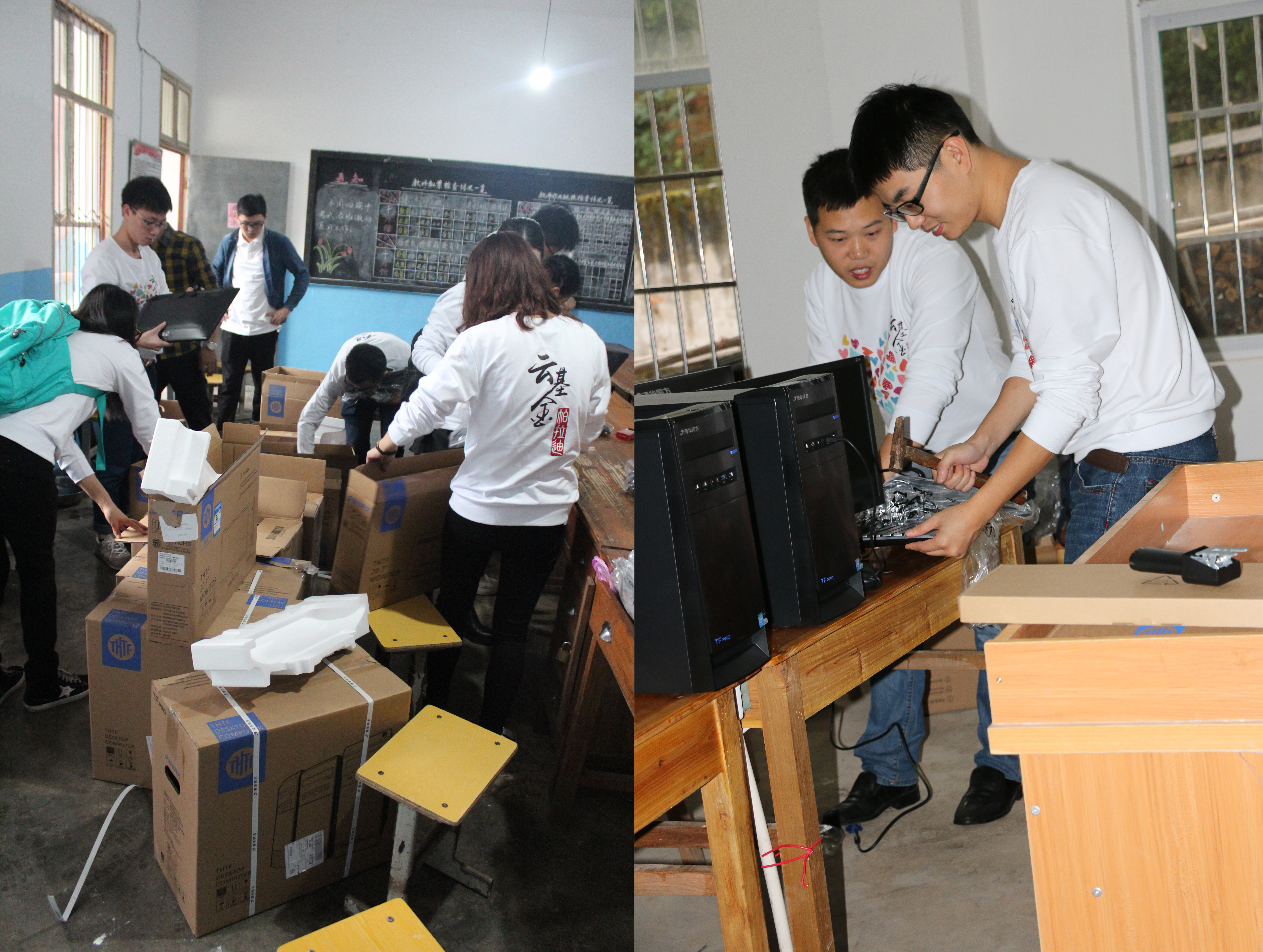 由于教育資金短缺,兩所學校一直沒能配備電腦,無法開設計算機課程。在得知這一情況后,我們特地為孩子們帶去了他們夢寐以求的電腦。并且利用自身是網(wǎng)絡科技公司的優(yōu)勢,我們臨時成立了一支由技術(shù)骨干組成的安裝調(diào)試小分隊,為兩所學校搭建網(wǎng)絡環(huán)境,安裝調(diào)試系統(tǒng)軟件和教學軟件。