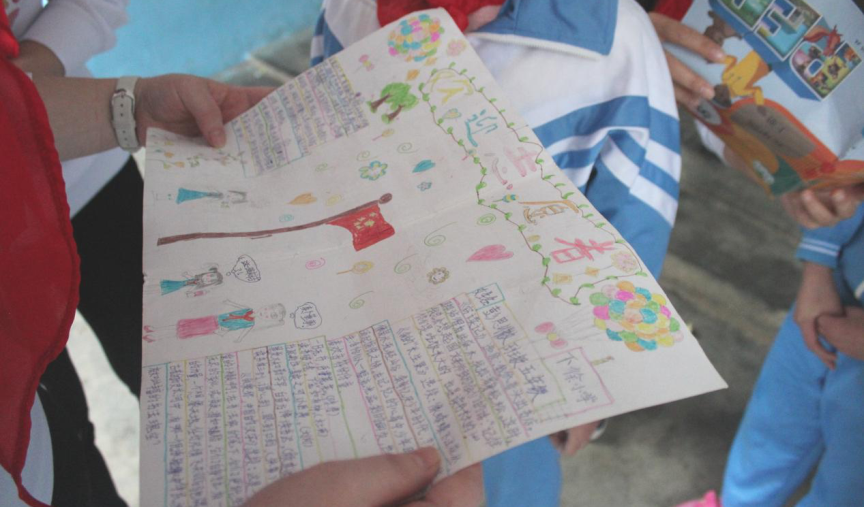 “贈人玫瑰,手有余香“,付出即是一種收獲。當孩子們?yōu)槲覀兿瞪霞t領(lǐng)巾時,當孩子們?yōu)槲覀兯蜕嫌H手畫作時,當孩子們?yōu)槲覀儷I上真摯笑容時,我們收獲了巨大的喜悅與滿足。