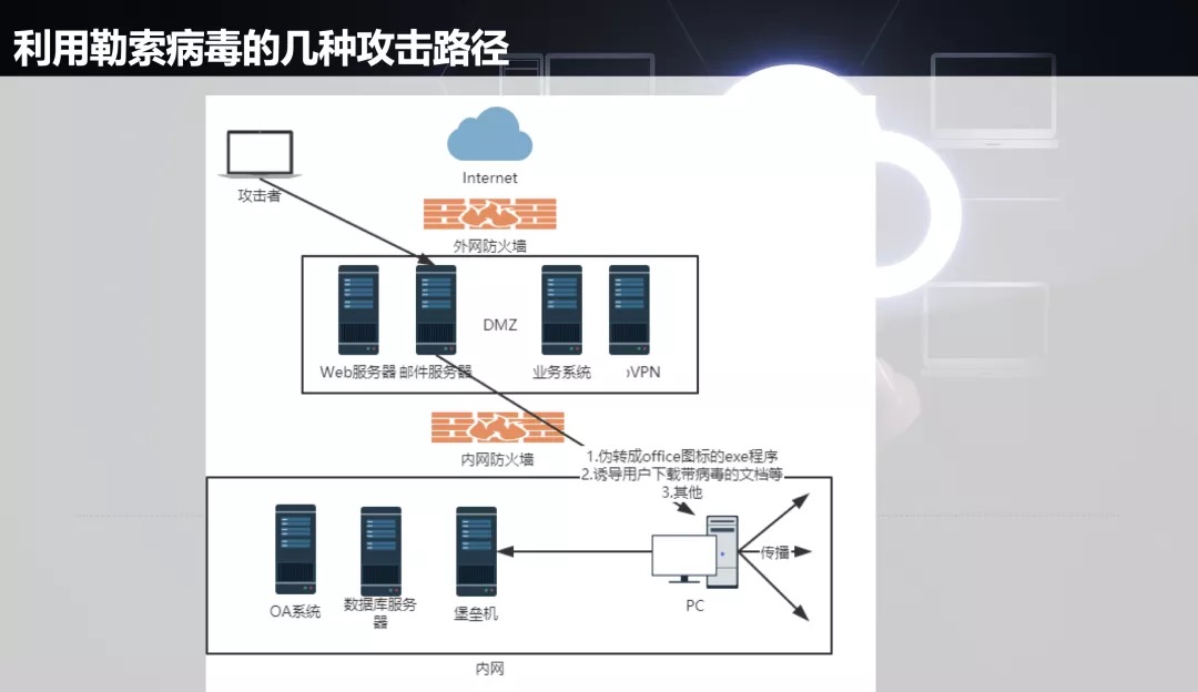 The attacker sends phishing emails (exe programs disguised as office icons, files with viruses, players, etc.) to all users within the enterprise by compromising the corporate mail server. The user unintentionally opened the file in the phishing email and was extorted.