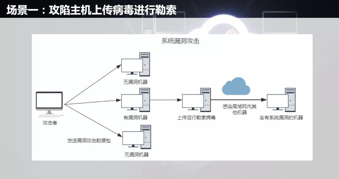 Process: The attacker directly obtains the system permissions of the target host through the ms17-010 vulnerability, uploads the virus program and runs, so that the target host is encrypted.