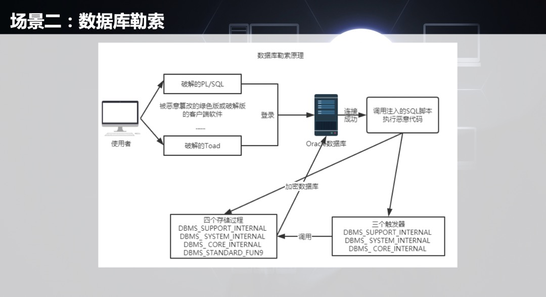 Process: The user uses virus-carrying database connection software to connect to the database server, which causes the server to be encrypted.