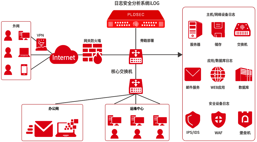 Palladium log security analysis system (hereinafter referred to as "ILOG") is a new generation of log collection and analysis product based on big data technology developed by Palladium Technology Co., Ltd. ILOG is a log processing platform that can centrally collect, manage and analyze all kinds of log information. It can centrally collect massive log data of the whole network, and realize centralized log management, real-time monitoring, alarm analysis, fast retrieval, etc. ILOG can not only meet the compliance inspection of relevant laws and regulations and industry standards, but also effectively carry out unified security management and in-depth analysis of the generated massive logs.