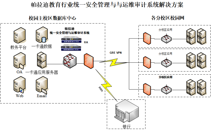 1. Realize core data assets, virtualization equipment, scientific research system and data, network center assets including business support system, business delivery system, campus "all-in-one card", intranet core network equipment, host equipment and database assets, and realize account number, authentication and Centralized control and management of authorization and audit.