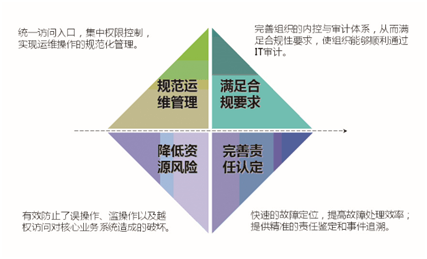 Improve the operation and maintenance security centralized authentication, realize the centralization and unification of the authentication entrance for users to access the information system, and adopt high-intensity authentication mode to make the login and authentication behavior of the whole information system controllable and manageable, so as to improve business continuity and system security. Centralized access control provides unified system and equipment access for maintenance personnel, provides access control function, effectively solves the operation problems of operation and maintenance personnel, and reduces the security risks of relevant information systems;